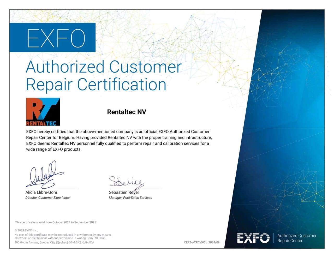 At RentalTec, we understand how important it is to keep the equipment in fine fettle. That’s why we’re proud to be an authorised service centre for Jetting, VIAVI, and EXFO. Whether the equipment is in need of repair and calibration, you can always count on the equipment being serviced with care and expertise.