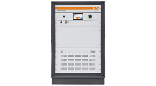 The Model 40T18G26A is a self contained, forced air cooled, broadband traveling wave tube (TWT) microwave amplifier designed for applications where wide instantaneous bandwidth, high gain and moderate power output are required. A reliable TWT provides a conservative 40 watts minimum at the amplifier output connector. Stated power specifications are at the fundamental frequency. The amplifier’s front panel digital display shows forward and reflected output plus extensive system status information accessed through a series of menus via soft keys. Status indicators include power on, warm-up, standby, operate, faults, excess reflected power warning and remote. Standard features include a built-in IEEE-488 (GPIB) interface, 0dBm input, VSWR protection, gain control, RF output sample port, auto sleep, plus monitoring of TWT helix current, cathode voltage, collector voltage, heater current, heater voltage, baseplate temperature and cabinet temperature. Modular design of the power supply and RF components allow for easy access and repair. Use of a switching mode power supply results in significant weight reduction. Housed in a stylish contemporary cabinet, the unit is designed for benchtop use but can be removed from the cabinet for rack mounting. The Model 40T18G26A provides readily available RF power for a variety of applications in Test and Measurement, (including EMC RF susceptibility testing), Industrial and University Research and Development, and Service applications. These sub-octave amplifiers feature moderate harmonic content.