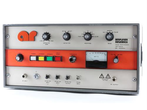 The AR RF/Microwave Instrumentation 40T26G40A is a self-contained, forced air cooled, broadband traveling wave tube (TWT) microwave amplifier designed for applications where wide instantaneous bandwidth, high gain and moderate power output are required. A reliable TWT provides a conservative 40 watts minimum at the amplifier output connector. Stated power specifications are at the fundamental frequency. The amplifier’s front panel digital display shows forward and reflected output plus extensive system status information accessed through a series of menus via soft keys. Status indicators include power on, warm-up, standby, operate, faults, excess reflected power warning and remote. Standard features include a built-in IEEE- 488 (GPIB) interface, 0dBm input, VSWR protection, gain control, RF output sample port, auto sleep, plus monitoring of TWT helix current, cathode voltage, collector voltage, heater current, heater voltage, baseplate temperature and cabinet temperature. Modular design of the power supply and RF components allow for easy access and repair. Use of a switching mode power supply results in significant weight reduction. Housed in a stylish contemporary cabinet, this unit is designed for benchtop use but can be removed from the cabinet for rack mounting. The Model 40T26G40A provides readily available RF power for a variety of applications in Test and Measurement, (including EMC RF susceptibility testing), Industrial and University Research and Development, and Service applications. These sub-octave amplifier features moderate harmonic content. Refer to Model Configuration Chart for alternative configurations and special features.